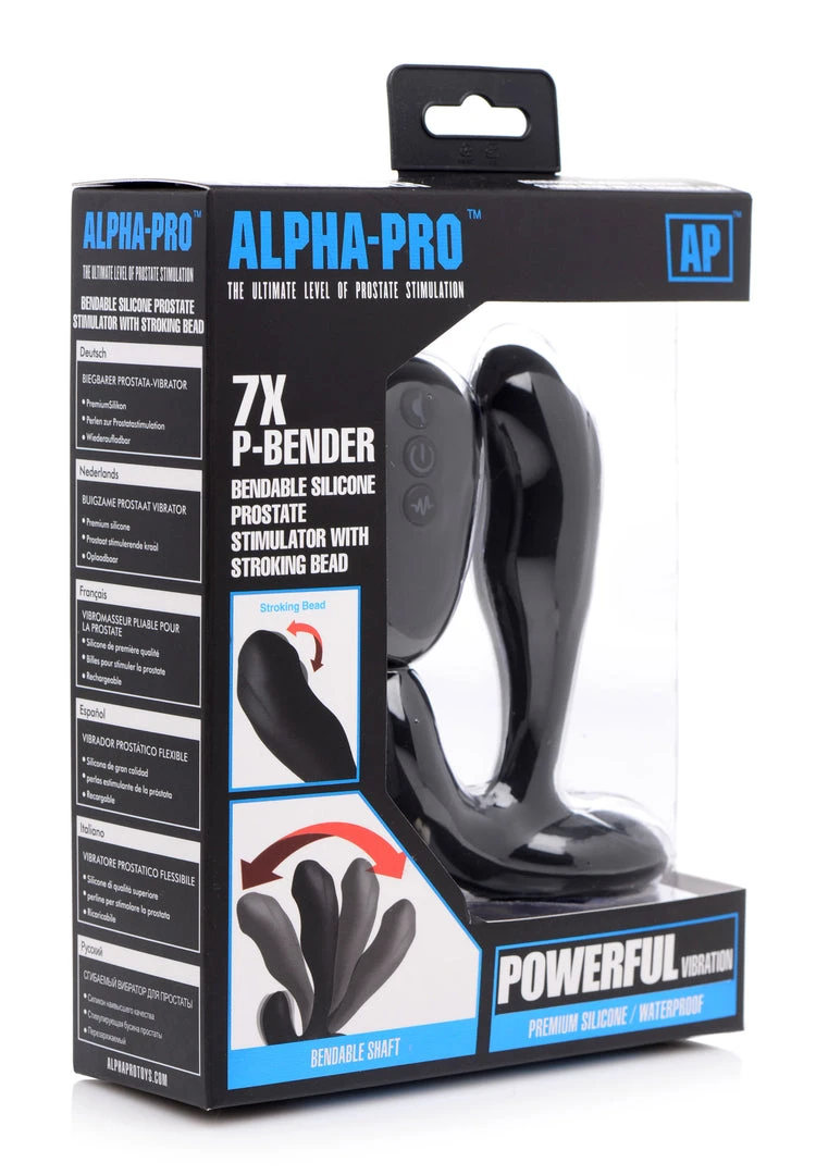 Bend it to your desired angle, then revel in the external vibration and prostate milking! The 7x P-Bender can be used with or without the remote control to cycle through 3 speeds and 4 patterns of perineum vibration, as well as 5 modes of milking motion from a small bead beneath the surface of the shaft’s tip. The dual pleasure is perfected by the flexibility of the shaft, which allows you to position it perfectly for pin-pointed prostate stimulation.