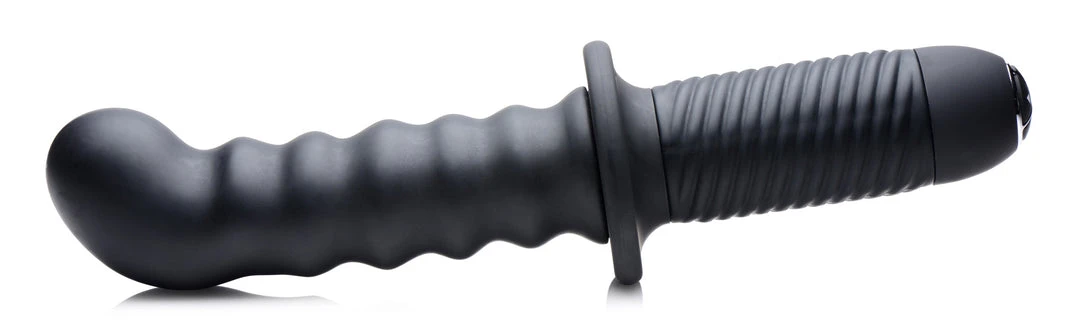 With every thrust, the dramatically curved tip of this vibrating shaft will hit the spot while every bold ripple massages your insides! Grab hold of the textured hilt and plunge this silky-smooth, silicone dildo into your hole to experience 10 powerful vibration settings. With the push of a button at the base of the handle, cycle through 3 intensities and 7 pulsation patterns that will blow your mind as they rattle your insides. This rechargeable tool is also waterproof, making it perfect for steamy shower sessions or private pool parties. Made of premium silicone, this vibrating thruster is non-porous, phthalate-free, and easy to sanitize with mild soap and warm water. Avoid use with silicone lubricants.