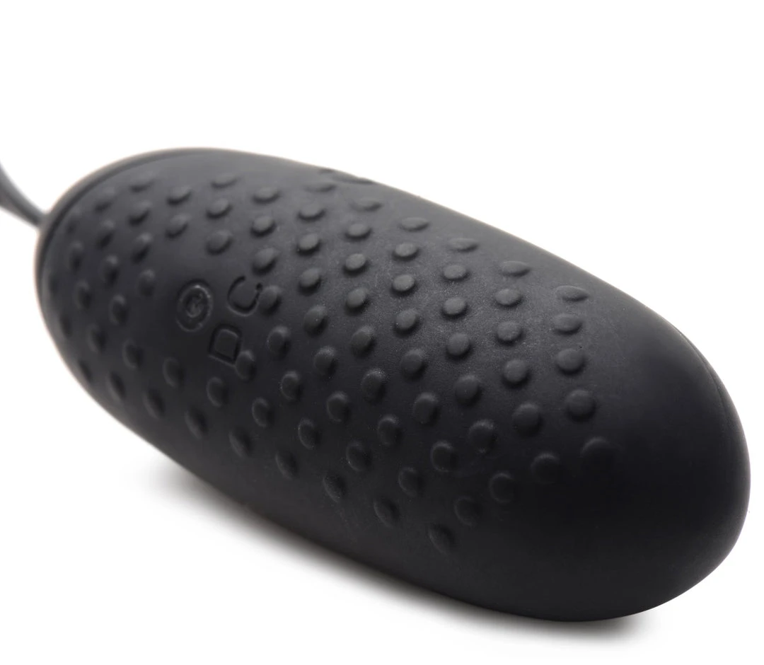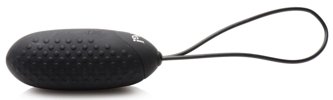 This powerful silicone egg vibrator has textured nubs that add extra stimulation as it vibrates inside. The silky smooth, premium silicone is phthalate-free and body safe to use. Use the battery operated remote control to switch between 4 speeds and 7 patterns of powerful vibration while the egg rumbles inside! Recharge the egg using the USB cable provided by pressing the pin into the dimple on the side. Made with waterproofing materials, this egg is splashproof and perfect for wet adventures!