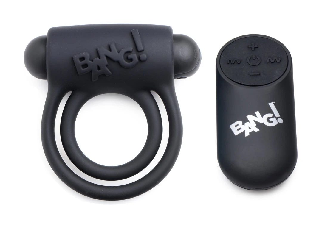 Enhance your cock with this velvety silicone ring and vibrating bullet combo! This Cock Ring from Bang! features two stretchy rings, one for your shaft and one for your sack, to increase erection hardness and duration while providing a satisfying hug. This powerful silicone ring also features an intense bullet vibe strategically placed to stimulate your lovers clitoris with every thrust!