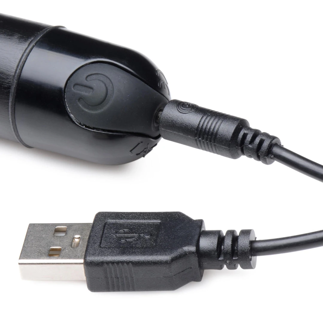 Have fun with this beautiful, metallic black bullet! Known for their powerful and intense vibration, the bullet is a favorite for those who want a vibe that satisfies! These long, slim bullet are USB rechargeable so you can keep them at full power and never change the batteries! Enjoy getting nice and wet with this waterproof, phthalate-free silicone toy! For compatible toys, the slim bullet can be fit inside a hallow dildo and enhance toys you already have.
