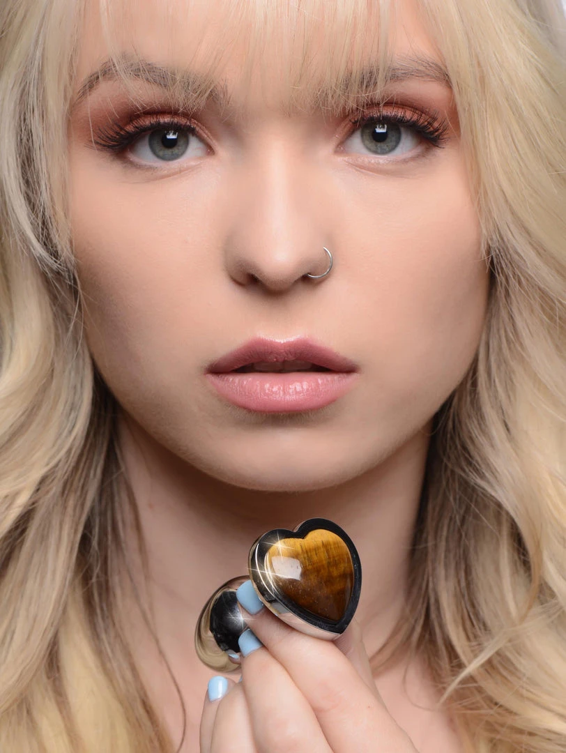 Make that booty fearless with this striking heart-shaped Tigers Eye Anal Plug! The genuine Tigers Eye gem helps with confidence while you play – enjoy fearless anal fun with decreased anxiety, perfect for exploring your anal limits on your own or backdoor warm ups with your lover.
