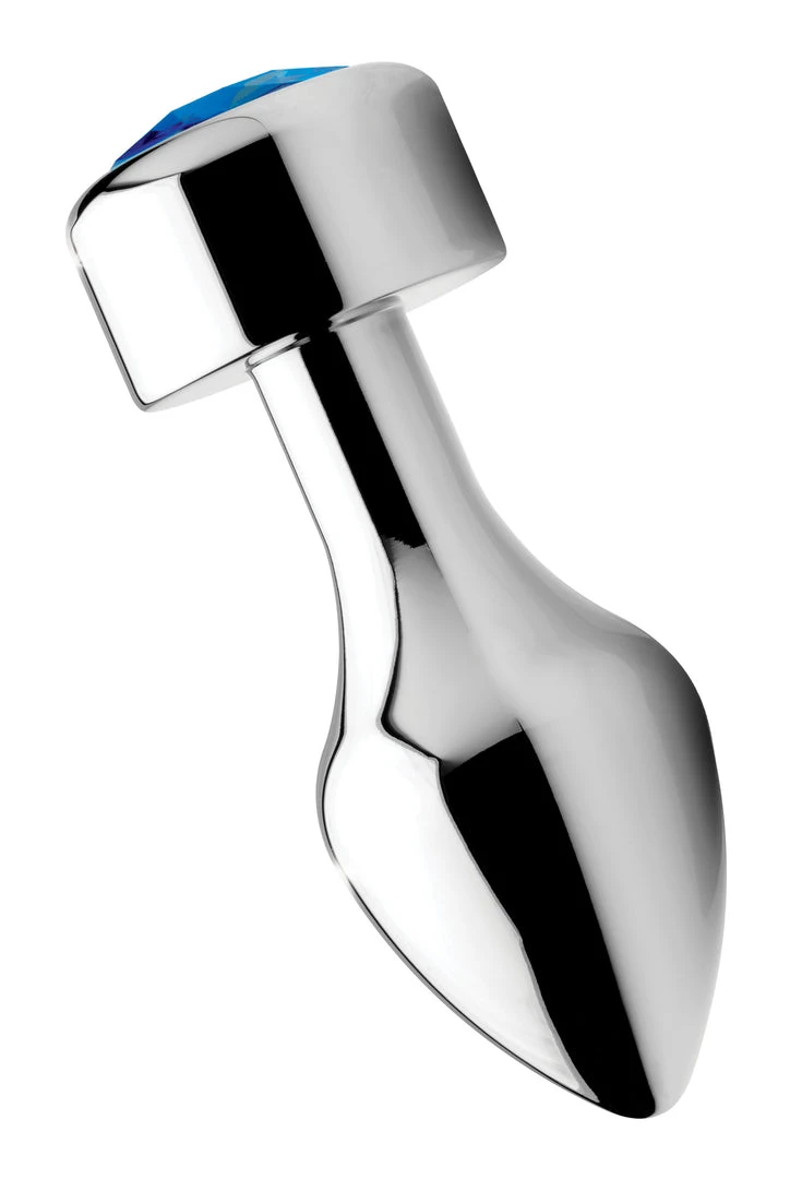 Adorn your derriere with this dazzling blue gem! The weighted base adds a comfortable and satisfying weight to your anal play, opening a new world of sensation for enthusiasts. The plug is made with nickel free aluminum alloy, perfect for temperature play – heat it up or cool it down for even more sensation. Washes easily with warm water and toy cleaner or mild soap.