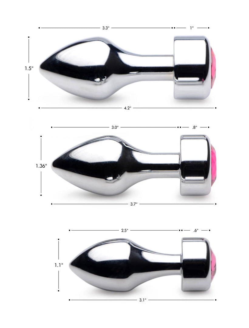 Adorn your derriere with this dazzling pink gem! The weighted base adds a comfortable and satisfying weight to your anal play, opening a new world of sensation for enthusiasts. The plug is made with nickel free aluminum alloy, perfect for temperature play – heat it up or cool it down for even more sensation.