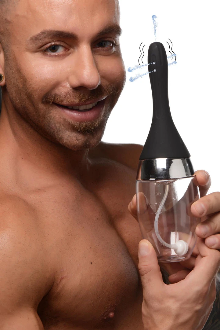 Clean out and freshen up with ease and pleasure! This premium silicone enema hose has 5 jets that shoot out at 360 degrees and send 3 different intensities of water into your backdoor. To add pleasure to this sensational experience, the weighted hose vibrates at 3 different levels giving your backdoor a relaxing buzz.