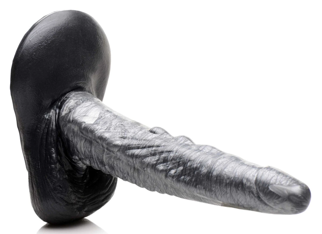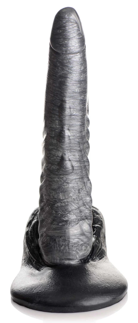 The strong protector of the night has awoken to violate you in all the best ways! The Gargoyle Rock Hard dildo has ridges and bumps along the shaft that come to a smooth point at the head. The black balls are pulled tight at the wide, flanged base. Perfect for hands-free fun, the suction cup base can simply be pressed firmly against any flat surface for solo riding. The dildo can also be used in strapon or for pegging play with a compatible harness.