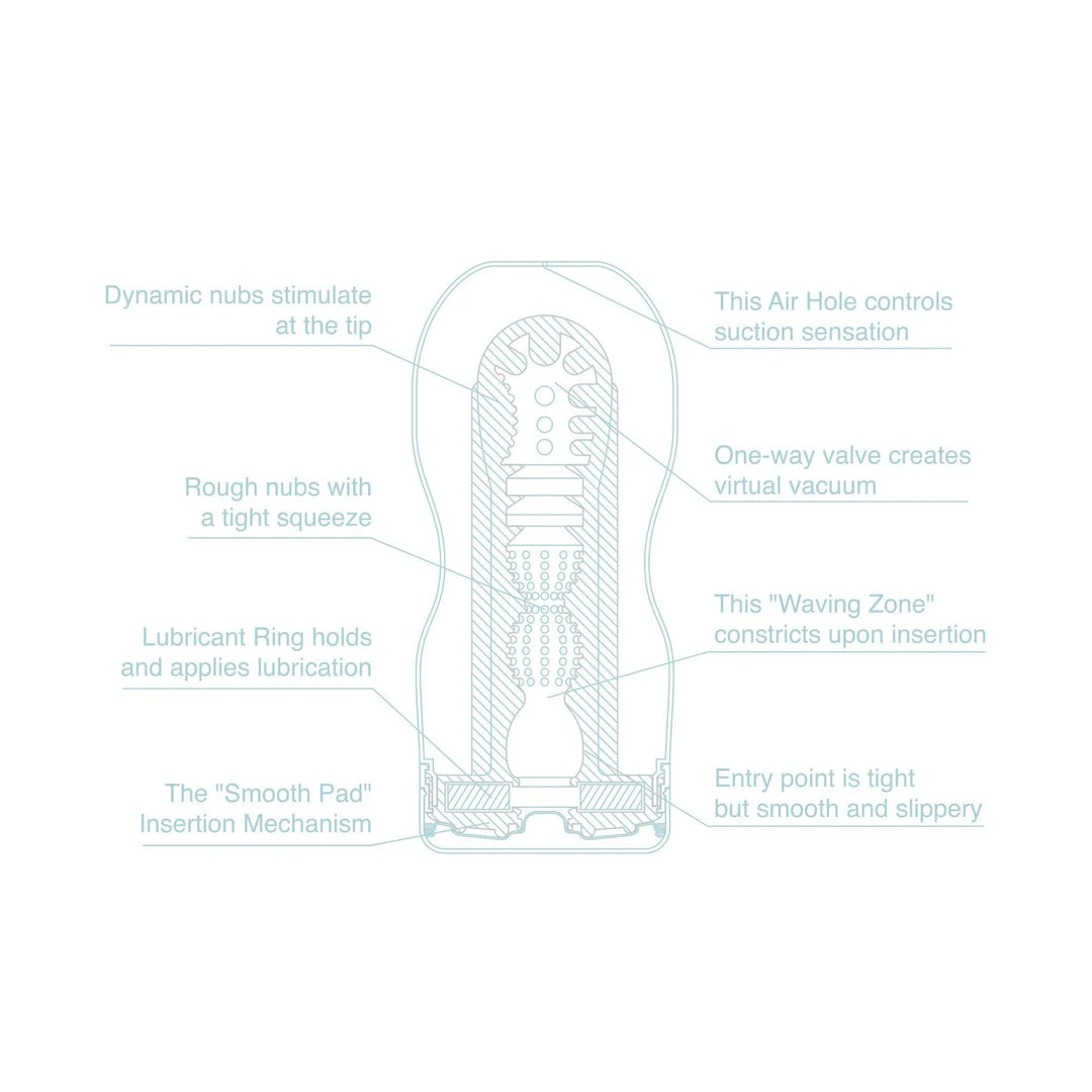 Beat the Heat with COOL TENGA! COOL TENGA CUPs feature a cooling menthol-infused lubricant that send a soothing, cool stimulation upon insertion! With its hourglass shape and special valves, the Original Vacuum CUP delivers amazing suction and stimulation from unique internal details. To create a strong internal vacuum, simply remove the sticker at the top of the cup before use and cover with your finger while using.