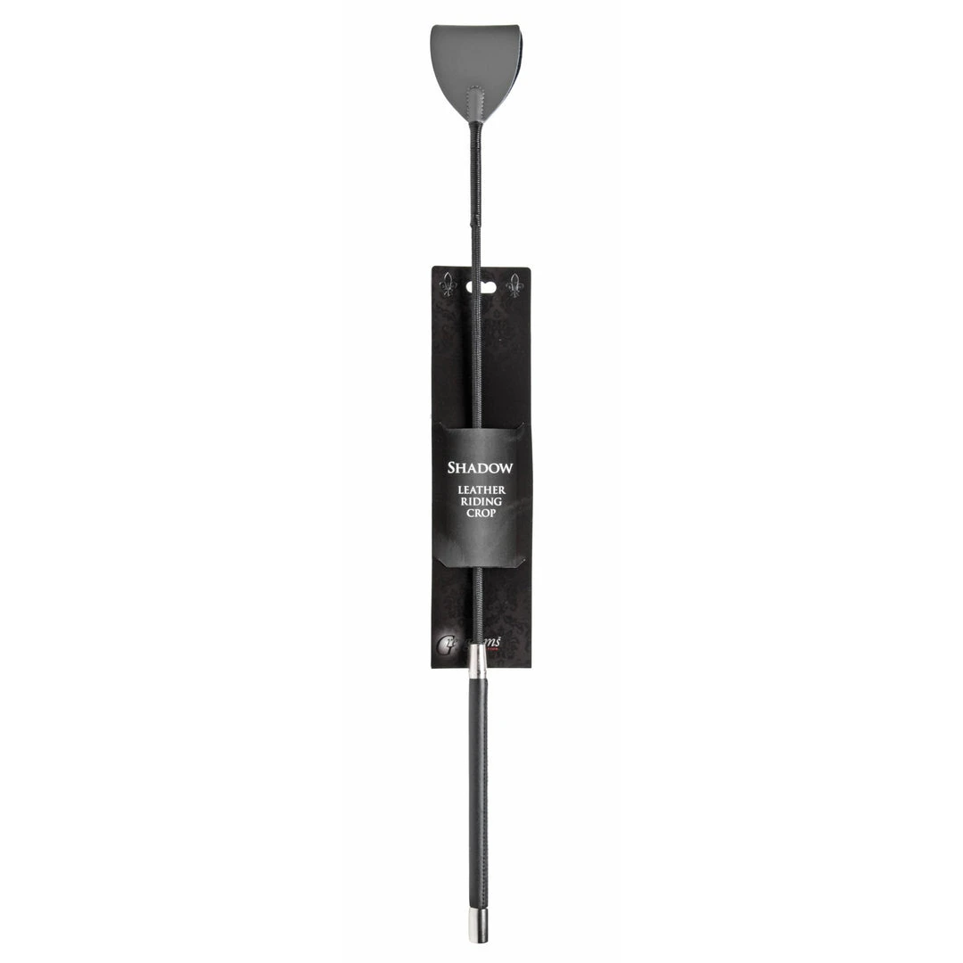 This elegant black crop is tipped with a flash of grey at the end that will deliver a crisp dose of pleasure and pain to the receiver. The crop measures 26 inches long, from the elegant woven handle tipped with steel, to the sensual leather loop at the end, dyed a deep, soft grey. The shaft is springy and supple, yet firm enough to put a bit of bite in your swing. The handle is capped off with an elegant steel emblem.