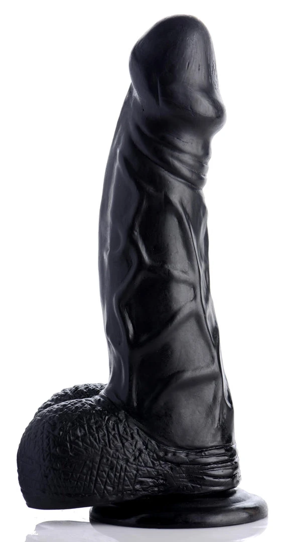 Bulging veins adorn this long, girthy, and slightly curved shaft, while the thickly ridged head increases your internal ecstasy! Enjoy no-strings-attached pleasure from this lifelike package, complete with a bulbous head to pop into your hole, a veined shaft to massage your tunnel with every thrust, and perky balls to bottom out on. The suction cup base allows you to mount it to a smooth, hard surface to take a ride, but also makes it compatible with many strap-on harnesses. Hookups dildos are proudly made in the United States of America with phthalate-free materials that are compatible with both silicone and water-based lubricants. Clean after use with mild soap and warm water.