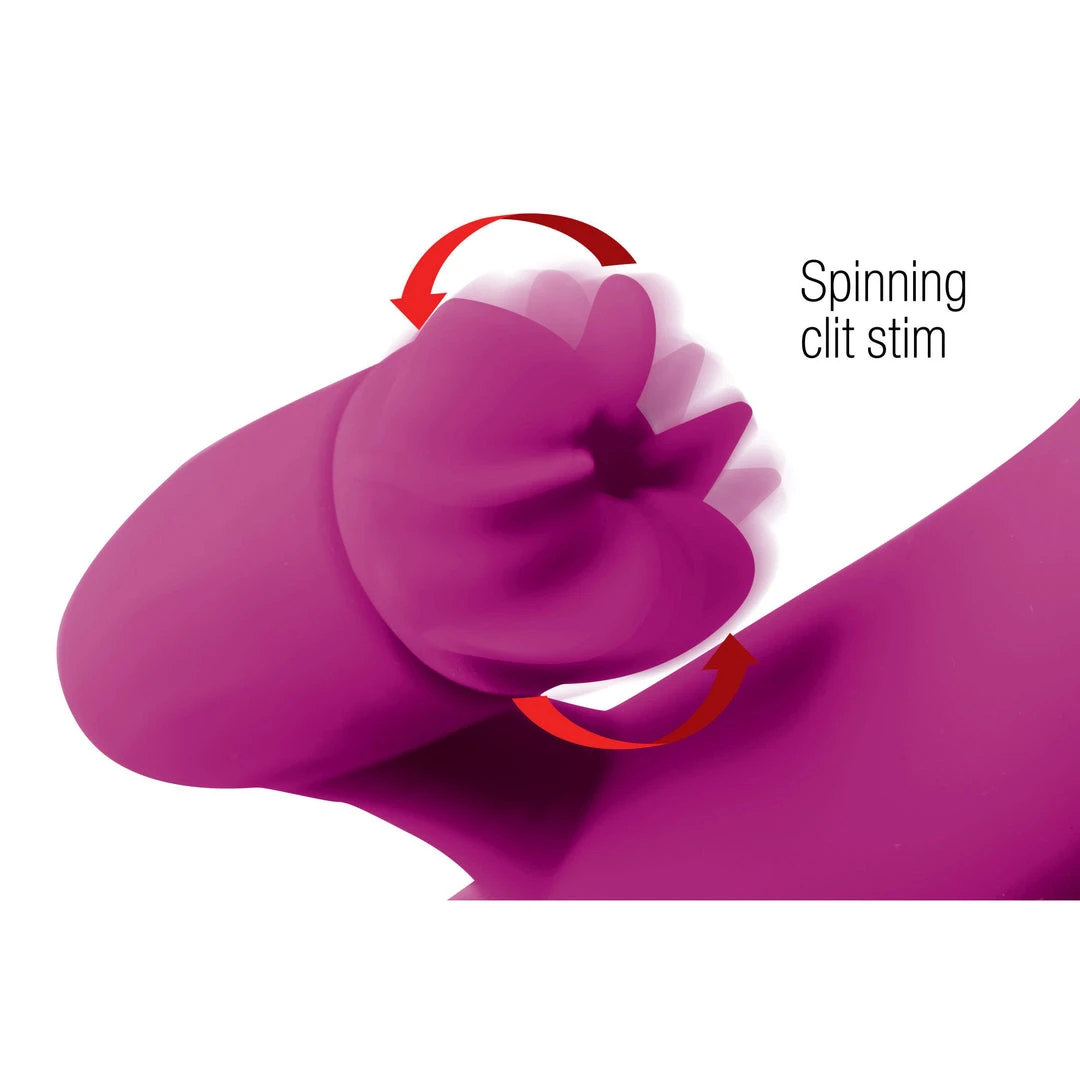 Treat yourself to the one-of-a-kind sensations of the Pleasure Petal! This rabbit-style vibrator has revolutionary capabilities! Experience both internal and external satisfaction with a curved shaft that vibrates against the G-spot and a unique clit stem with soft, rotating tongues. This rechargeable vibe packs 3 powerful speeds and 4 exciting pulsation functions. The delicate petals of the clitoral stimulator also have 4 functions to experiment with. Made of premium silicone, this vibe is non-porous and phthalate free. Clean with mild soap and warm water and avoid use with silicone lubricants.