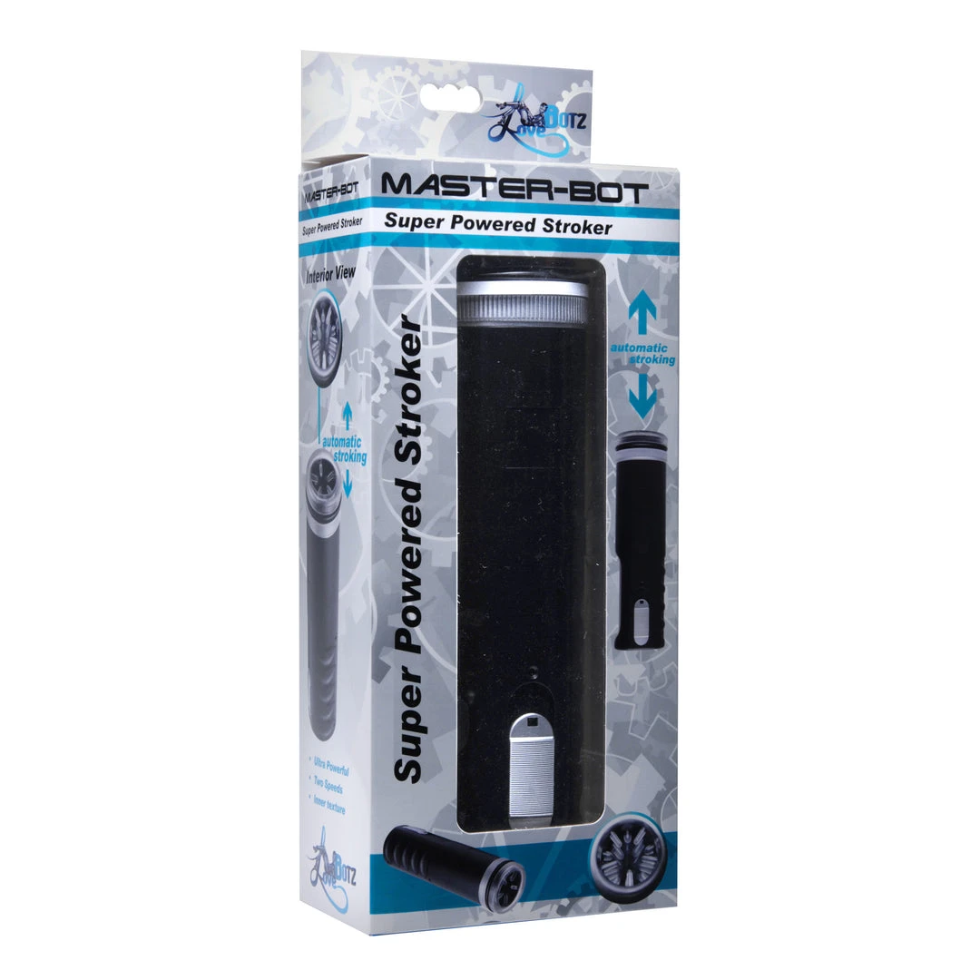 The Master-Bot is a super powered masturbator that does the hard work for you! Enjoy ultimate masturbation sessions with the push of a button, or add to the experience with your own stroking action. Within the hollow chamber is a soft TPR sleeve that wraps around your rod and heightens the experience with rows of strategically placed ticklers that will massage your rod as you stroke. With the simple two speed controller switch, and the exhilarating textured interior, you are assured an explosive finish with the height of stroker technology. Simply lube up, slide in, and let Master-Bot do all the work!