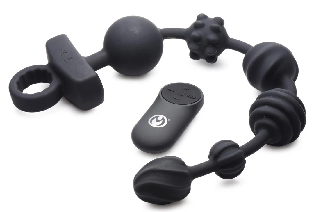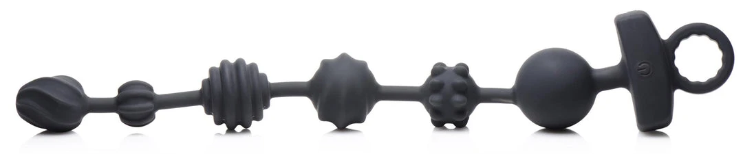 These Dark Rattler anal beads are sure to give you a sensational experience! Each of the 6 beads has a unique texture to enjoy as they are popped inside varying from curved rolls, angled ridges or firm bumps. Enjoy intense vibration from 3 powerful motors placed within the beads. Choose between 3 different speeds and 7 patterns; the vibration can be turned on in each individual bead. Use the remote control to control the vibe inside!