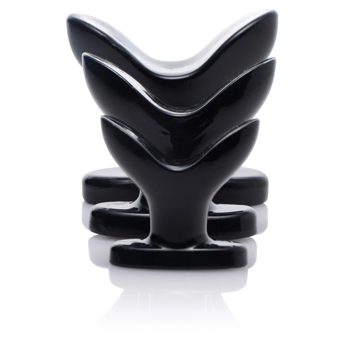 Are you ready to turn that tiny, tight ass into a gaping hole made for pleasure? Now you can work your way up from a small plug to a large one… but there is a twist! The ass anchor is no ordinary anal plug. Its unique, flexible, flared shape allows you to pinch the ends together for a smooth, easy insertion. However, once it is inside, it will expand to create a one-of-a-kind sensation as it applies pressure on the walls of your anus! With the mini, original, and XL Ass Anchors, you will be able to have the most comfortable penetration for such a massive feeling of fullness. The base is designed to sit between your ass cheeks and will stay in place during even the most rigorous play. How much do you think you can take? Find out with this extreme kit for your anal training!
