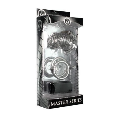 Has your naughty slave been enjoying too much liberty? Keep your captive under lock and key with this intriguing confinement piece! Lock him into submission by choosing one of the three differently sized rings, and placing the cage over the penis shaft. This is where the power exchange happens. With his manhood confined in this fortress of steel, he will be unable to achieve a full erection, limiting his satisfaction and stimulation, while keeping him pleasantly compliant. Viva la domination!