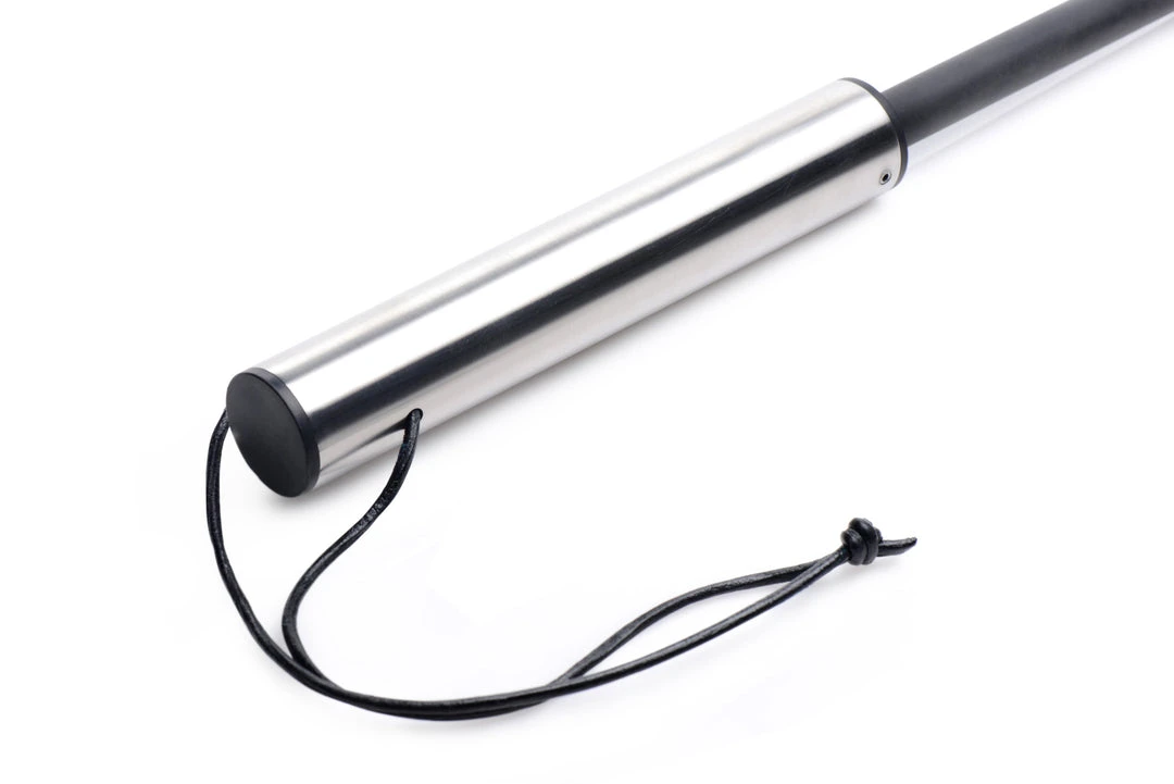 Some subs and slaves require drastic measures… If your masochist is in desperate need of more intense discipline, indulge them with a cane that will leave a lasting impact. A constant threat in your punishment arsenal, the mere sight of the Command Cane will encourage your plaything to behave themselves – but just wait until they feel it. Each unforgiving strike will have them falling apart at the seams, a broken toy in your hands. As you grasp the cool metal handle, remember that a little mercy goes a long way. A leather strap at the end provides a convenient means to hang in storage with your other tools of torment.