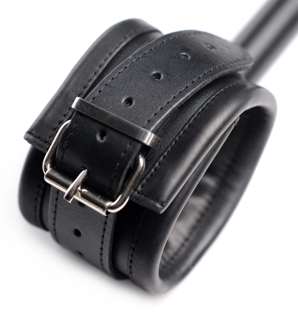 Your precious plaything will be trapped and at your mercy in this dual spreader system. Luxurious leather cuffs wrap around their wrists and ankles, adjusting to the perfect fit for comfort and security. Sturdy metal bars keep their arms and legs pried open so that their body is helpless to your gaze and touch. Have your way with them while they squirm in their restraints. The spreader bars can be connected or used separately, depending on how you want to play!