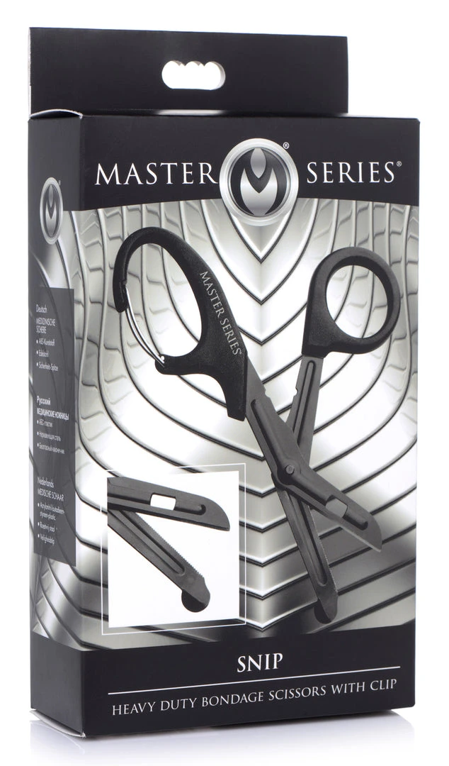 The Snip is a dependable pair of shears every dungeon can count on! These Bondage Scissors are perfect for cutting rope or bondage tape thanks to its durable stainless steel blades and blunted tip – perfect for those testing their bondage limits. The carabiner handle makes it easy to keep close at hand and on your person.