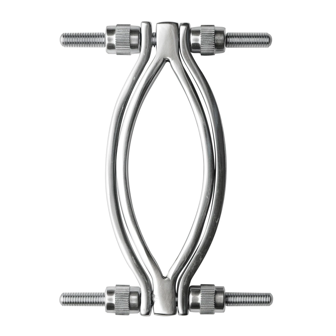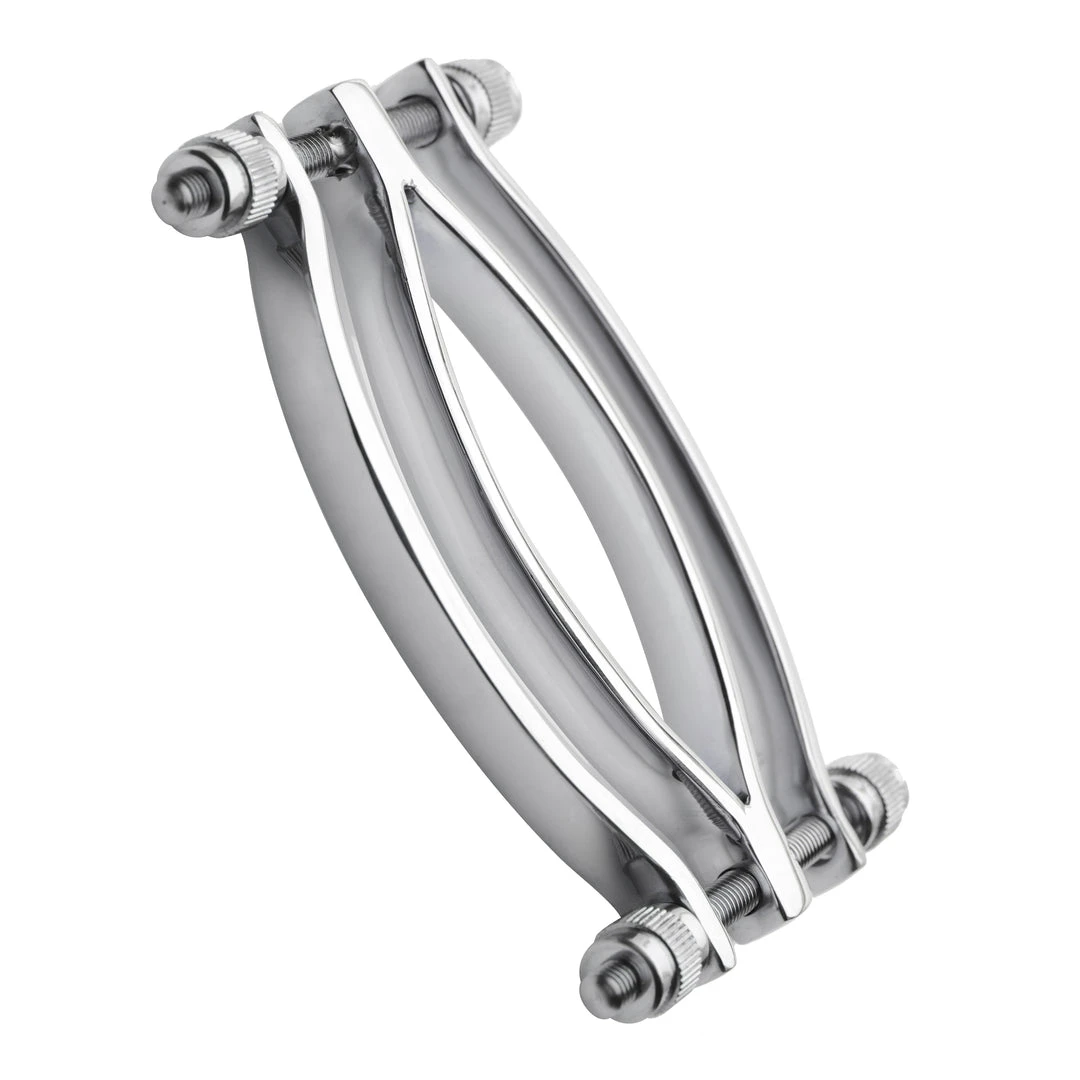 Get creative with the tease and torment of your partners most delicate parts! This clamp allows you to spread those labia wide open, granting you access to their clitoris and vagina. Use the thumbscrews to open up the exteriors of the clamp and pull their inner or outer labia through. Tighten the thumbscrews to secure the device, leaving them trapped in pinching pain and pleasure! The heavy-duty stainless steel is durable enough to last you through many years of inventive use.
