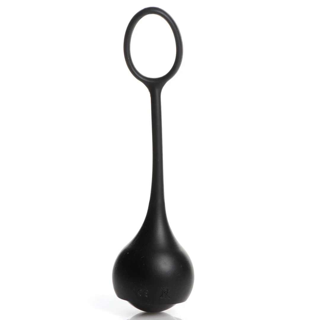 Show how strong you are with this dark dangler silicone wrap! Start with the lightest weight and place it inside the silicone ball cup so it fits snug. Then, take the ring and strap and stretch the ring so it fits over your shaft. Bring it above the head of your shaft and find a place where it feels tight, but not uncomfortable, then slowly let go of the weight and see how much you can lift on your own! Play with trying to lift your shaft while the weight is pulling down and explore using your PC (pubococcygeal) muscles as your shaft pulses in rhythmic sets! Once you’re done, let your penis rest and remove the silicone strap. If you experience any friction, use a very small amount of water based lube.