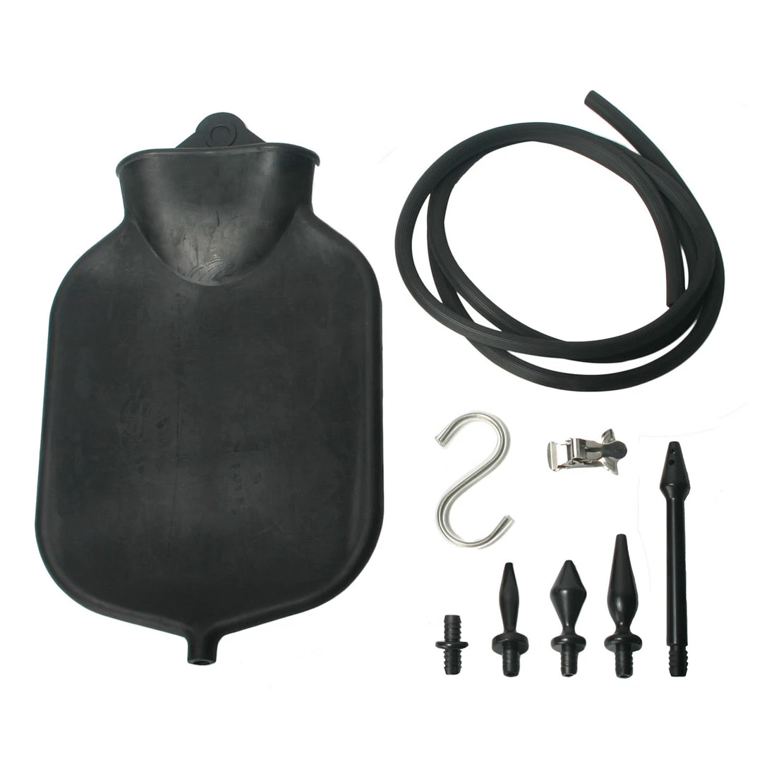 Be confident and be prepared thanks to this deluxe Black Enema Set! It includes everything you need for a thorough and pleasurable cleanse. The durable rubber bag can hold up to a gallon of fluid, and the long flexible hose makes it easy to administer. Four different shaped smooth enema tips–wide, thin, long, or stemmed–allow you to choose what works best for you. Everything fits conveniently in the leather storage case for safe-keeping or traveling.