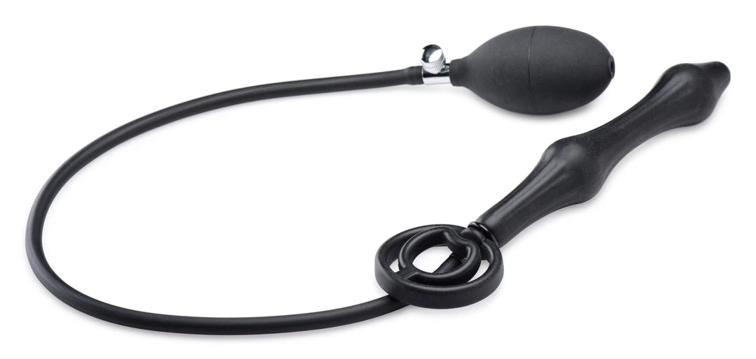 Measurements: Insertable length 6.5 inches, widest insertable diameter 1.2 inches deflated, 2.75 inches inflated; cock ring unstretched diameter 1 inch, ball ring unstretched diameter 1.75 inches