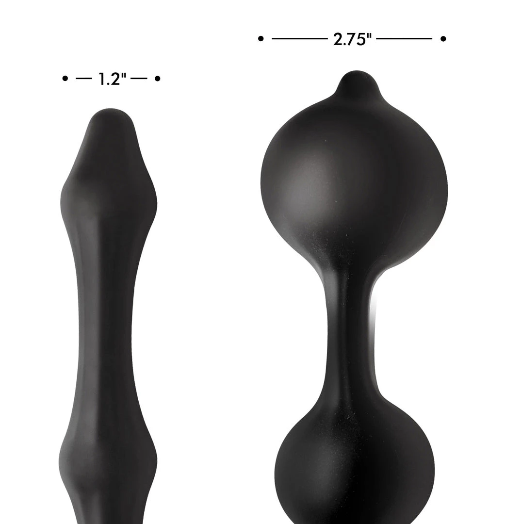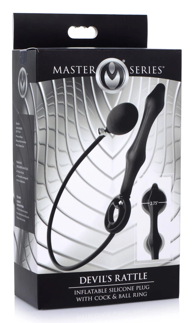 This inflatable silicone plug has it all! The Devils Rattle is an anal toy packed with unique features to satisfy your kinky wants and needs – featuring an inflatable plug, flexible cock and ball ring, and internal balls to rattle and drum against your anal internals with every movement. This silky anal delight is perfect for players looking for a versatile toy that checks all kinds of boxes!