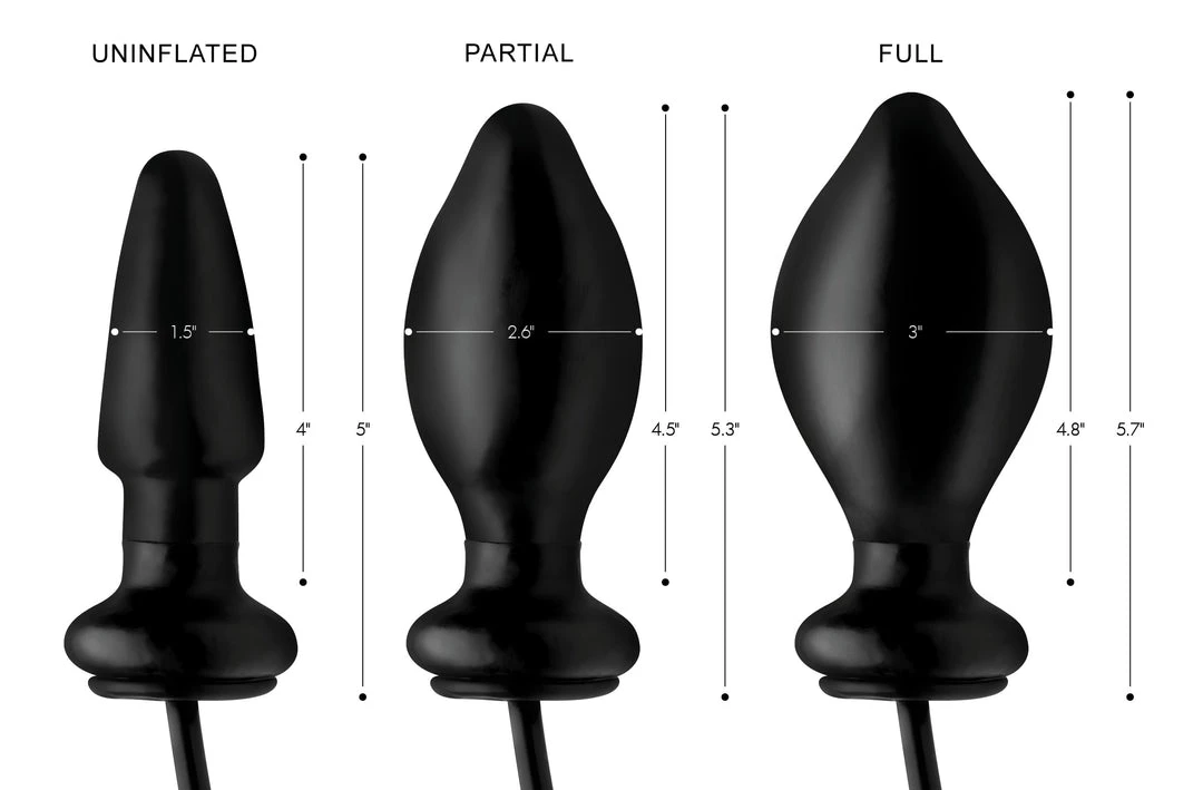With the Expander Inflatable Anal Plug, you can enjoy a full feeling with an incredible stretch. The smooth plug comes to a tapered, rounded tip for easy insertion, while the flared base ensures easy retrieval and comfort. You can quickly deflate the plug by pressing the quick release button at the top of the valve. This heavy duty inflatable butt plug is designed to deliver customized pleasure, so you can enjoy solo sessions or take turns with your plaything…