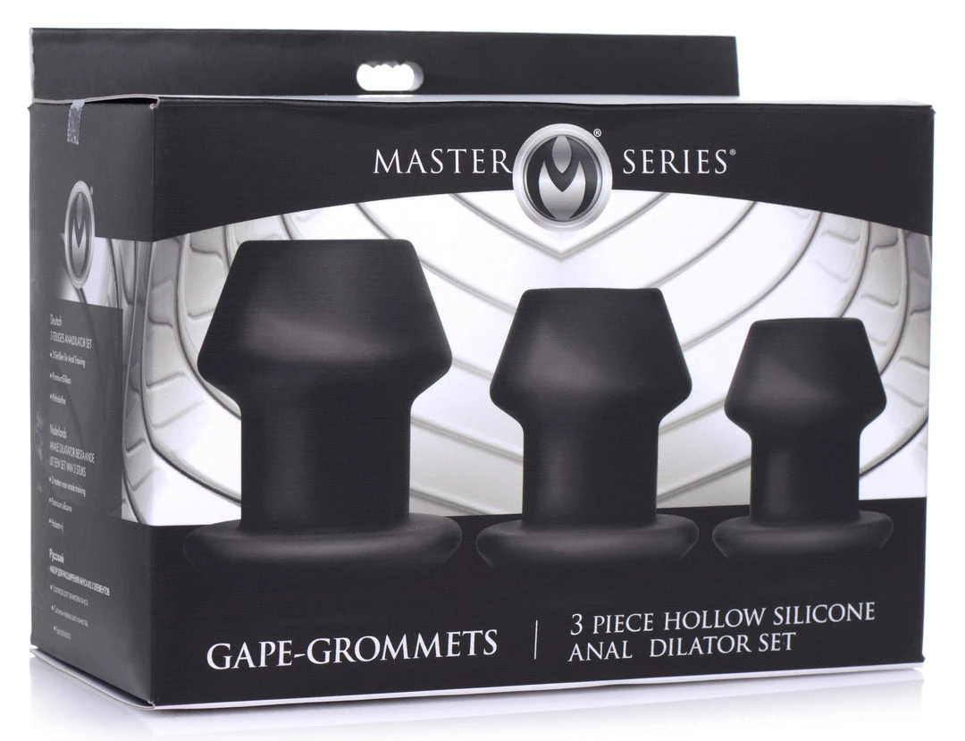 A 3 piece anal dilator set for advanced anal enthusiasts. The Gape Grommet set is designed to spread your hole nice and wide so you or your partner can enjoy peeking inside your deepths! The graduated sizing and tapered tips make these silicone dilators easier to insert and assists in gradually leveling up your backdoor stretch at your own pace.