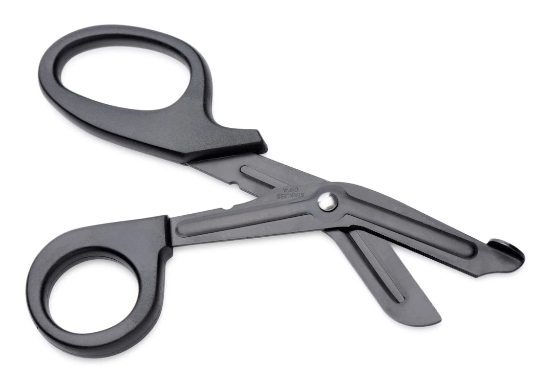 These heavy duty scissors slip under restraints like ropes and tethers for a quick escape! Perfect for cutting your partner loose when they say the safeword or feel uncomfortable. The blunt shovel tip easily slips under restraints without worry of hurting your partner.