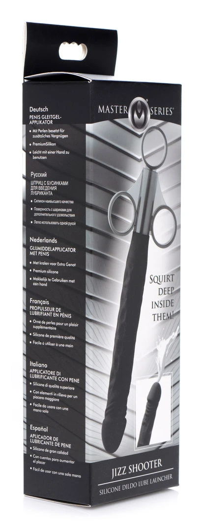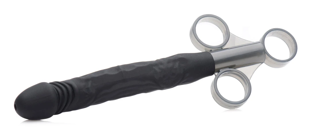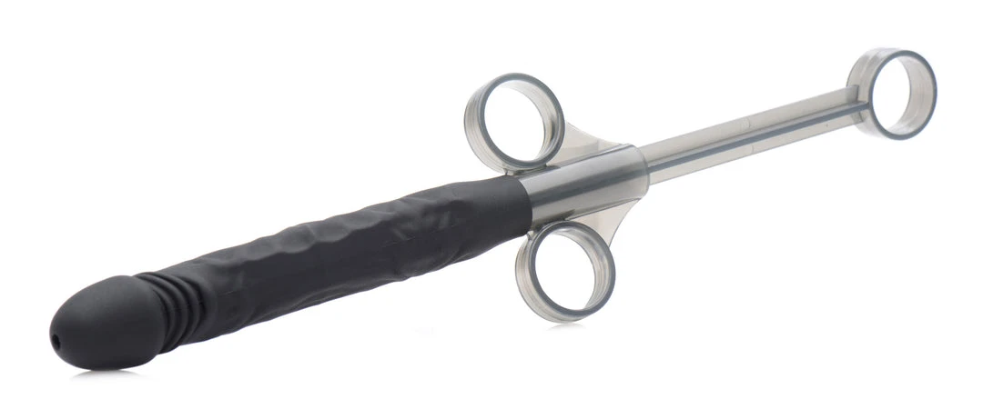 This mini dick will slide smoothly into your hole and fill you up with your favorite liquid! The silicone penis shape is texturally rich with realistic details. Designed for one-handed ease of use, the convenient finger loops allow you to fill the applicator with whatever lube or liquid you want and inject with one simple thrust. The XL size holds over twice the amount of most launchers, so you can get the job done with less steps! Made of premium silicone, this lubricant applicator is compatible with water-based and oil-based lubricants only, and is perfect for use with Jizz Lube. This non-porous and phthalate-free material cleans easily with mild soap or toy cleaner.