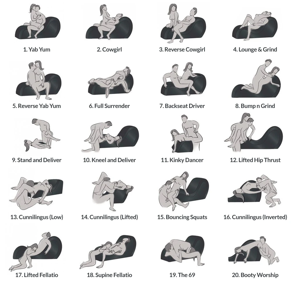Try out doggy style with your partner’s hips lower or give yourself a chance to straddle the couch and thrust while standing, rather than kneeling. Lay back and let yourself receive pleasure from their mouth and tongue; up the level of kink and let yourself be cuffed to the sides so you can writhe in pleasure and remain bound to the couch. Try straddling them in Cowgirl pose, or reverse it. Bring their head or yours high, or lay back letting your head drop into inverted poses. Want to give them oral pleasure but keep your neck from arching? Have them sit on the edge of the couch as you kneel or crouch so you can eat them out for days! Have them lift their hips or bottom high so you can stand and easily reach their erogenous zones and use a vibrating wand or their favorite toy on them as they are restrained and supported by the couch. When you desire to give yourself a platform to kneel on instead of a curve, simly place one of the included sex-aid pillows under the knees for a firm, flat surface. To give their face a pillow for support as you drive into them from behind, place one at the top to cushion their face – or to muffle their loud moans!
