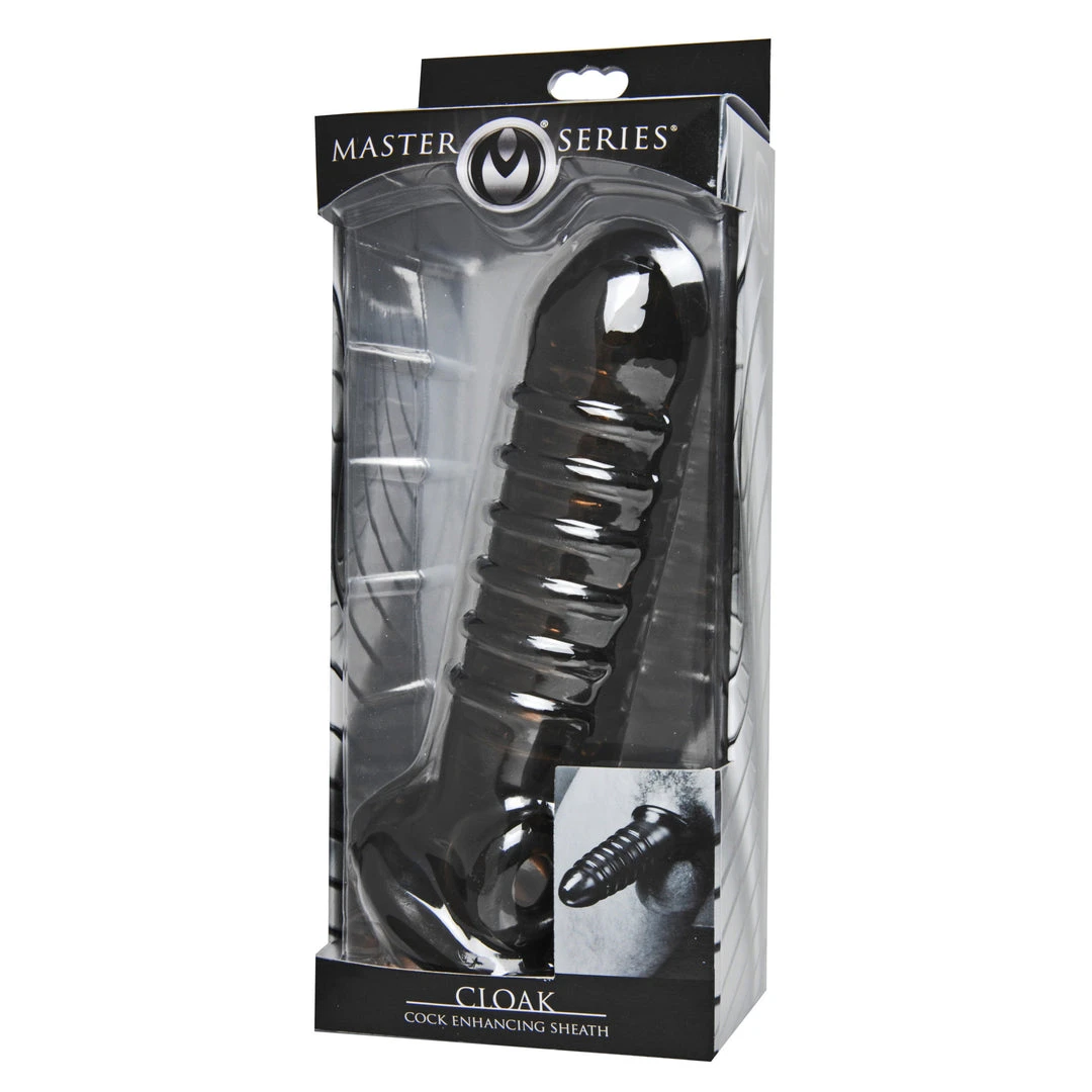 Give yourself an instant boost in size with this erection-enhancing sleeve! Create a brand new sexual experience when you pleasure your partner with this ribbed sheath. Adding both length and girth, the phthalate-free Cloak will stretch your partner like never before. Just lube up and slide into the soft, textured interior, securing the ball strap around your scrotum for security and increased sensitivity. You will love the way your partner reacts when you penetrate them with your bigger, ridged cock!