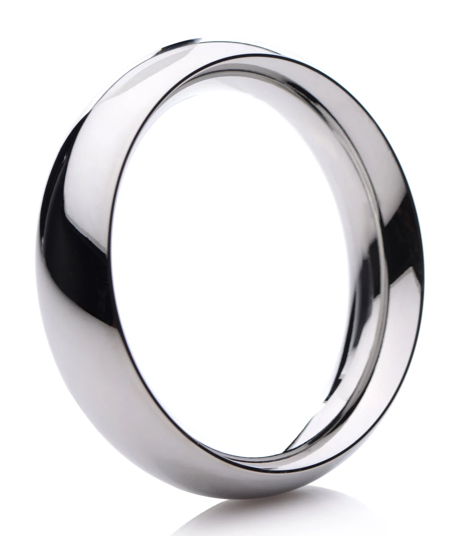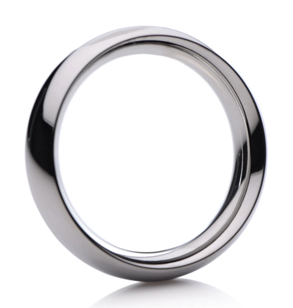 Feel the weighty steel on your skin and enjoy the more hardcore appearance of your package! This shining metal cock ring is at home in the bedroom as well as the dungeon.