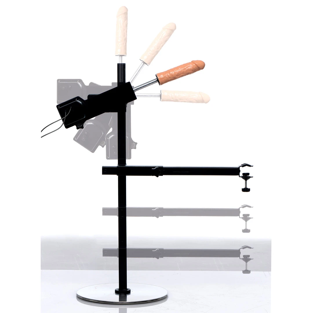 This machine was designed to mount to the Obedience Sex Bench for non-stop screwing while your partner is comfortably restrained, but it is also a convenient machine for use without. The mounting arm adjusts in length and height to accommodate other sex furniture, including cages, swings, and more.