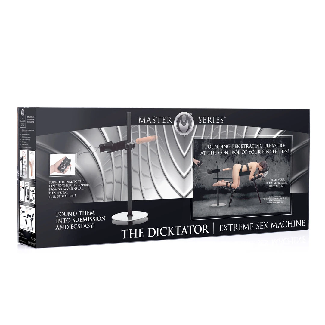 Create your ultimate BDSM and sex station with this versatile sex machine! The Dicktator provides pounding, penetrating pleasure at the control of your fingertips. Get creative with your bondage set-up and simply add the Dicktator in with its customizable stand. Assemble in less than 5 minutes and enjoy incredible machine-powered sex on your own or with a partner!