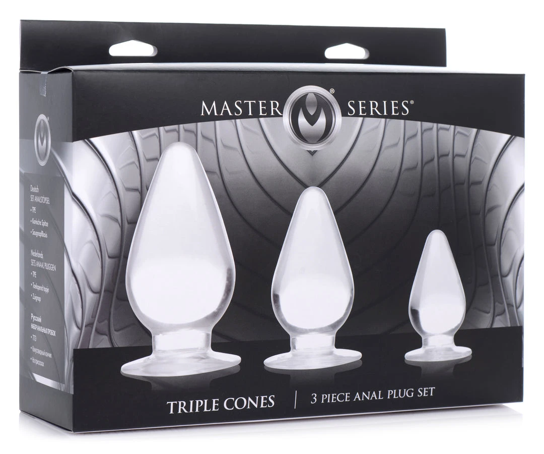 This set of Triple Cones features 3 dynamic sizes to plug you up! Long lasting toys designed to stay with you throughout your entire anal play journey – start off small and graduate to the medium and larger sized butt plugs as your mind and body get used to the new sensation of anal fill. Veterans and experts will appreciate the smaller plug for warming up and the largest plug for giving the satisfying anal stretch they crave!