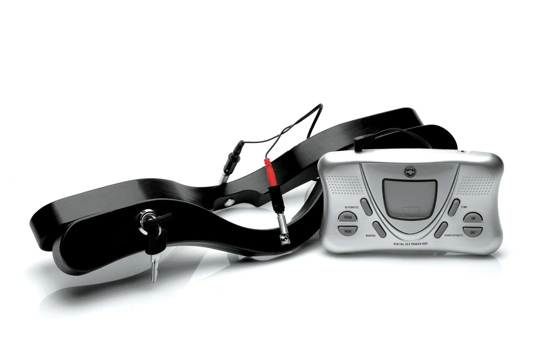 This device is made to hold the balls out back between your playthings legs, exposed and vulnerable. This leaves the wearer on their knees, unable to straighten out or stand up. It is hand finished and beautifully lacquered to complete the sophisticated design. A lock on this wicked CBT device ensures that your prey cannot escape until you are done playing. However, the feature that sets it apart is the two banana clip plugs that allow the device to be hooked up to electrosex power boxes. This allows a safe current to be run through the wearers testicles, adding a whole new level to the fun and torment that can be had with the Humbler. E-stim leads are banana style and work with Folsom products directly. Our Pin-to-Banana Inline Adapters, included, will convert pin style leads to fit into the connectors, allowing you to use Zeus Electrosex Power Boxes with this product.