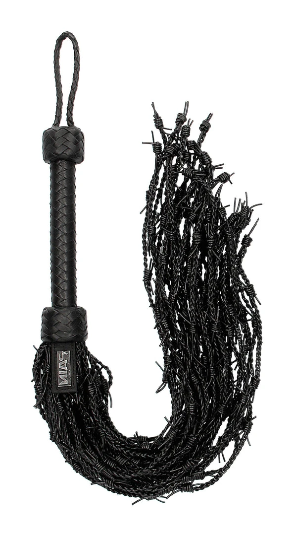 This beautifully crafted, genuine leather, barbed wire flogger will strike fear into your sub with its intimidating design. The integrated leather barbs will scratch and tickle when used lightly, but with a heavier hand, they really are a force to be reckoned with. Made from real, high-quality leather, the flogger consists of 36 finely plaited tails, each with embellished barbed wire knots adorning their length. Equipped with an exquisite non-slip handle and wrist loop for optimum control, this flogger is a great addition to any BDSM collection!
