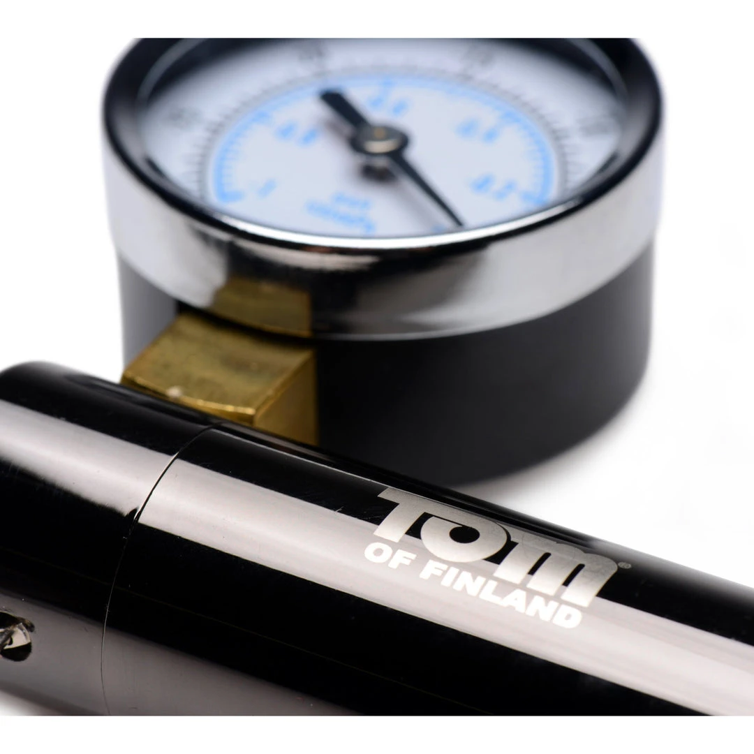 Get rock hard with a heavy-duty pumping system. Achieve an erection as impressive as the iconic drawings of Tom of Finland when you slip your penis into the silicone comfort sleeve of the cylinder, creating a strong seal with a bit of water-based lube if necessary. Snap the hose onto the vacuum lock top of the cylinder and squeeze the comfort grip handles to begin suction. Every squeeze will reflect on the pressure gauge, as well as in your penis as it becomes engorged.