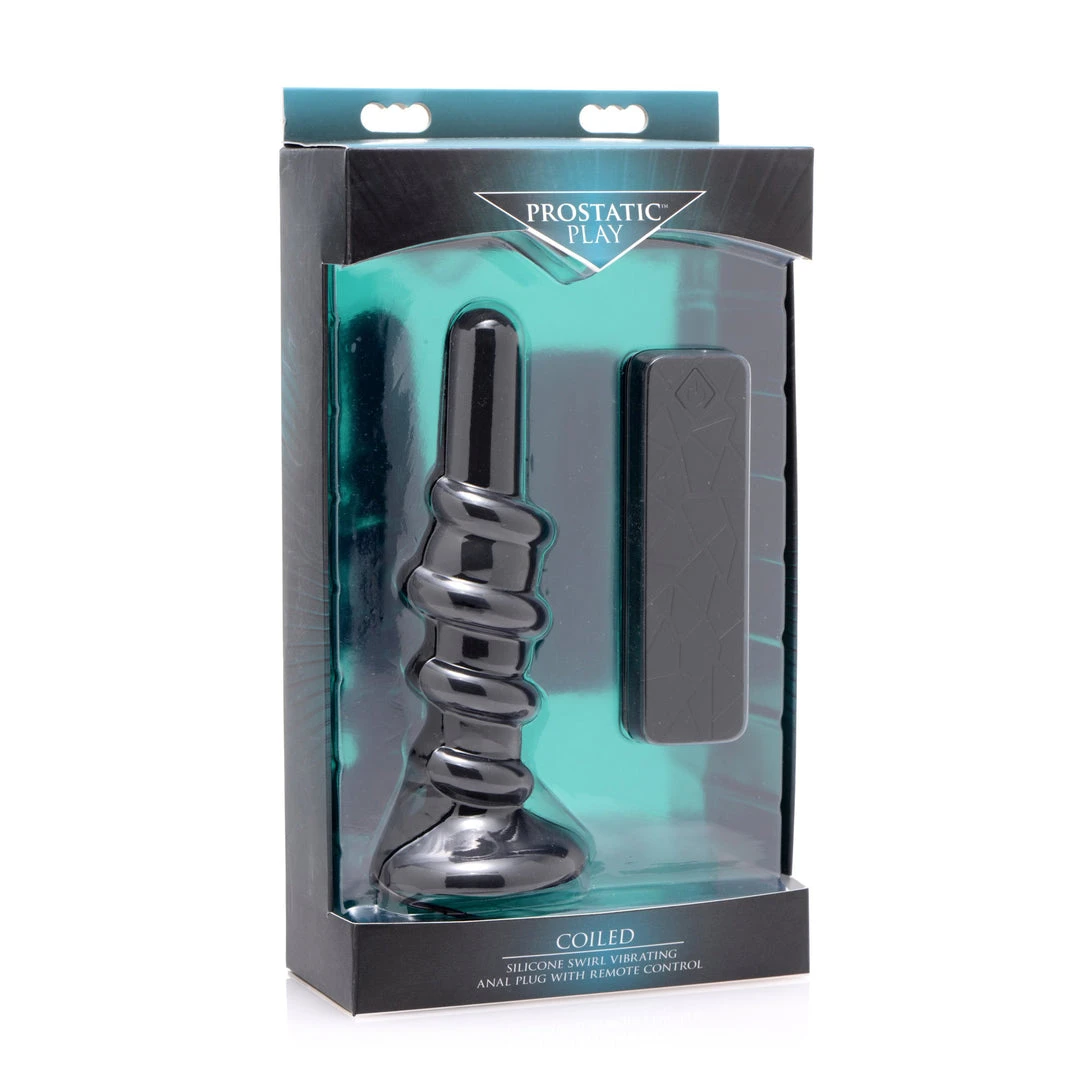 This rare find is an extreme way to experience anal play! The unique design of this vibrating butt plug includes a winding ridge that swirls up the bulb, making penetration exciting and stretching easier. With a strong suction cup base that can be mounted to a smooth, hard surface and a wired remote control that emits 3 speeds and 7 functions, this plug is perfect for solo or partner use. Fill that booty with vibrating pleasure! This firm, but flexible anal toy is made of non-porous and phthalate-free silicone, making it body-safe and easy to clean with mild soap and warm water. Avoid use with silicone lubricants.