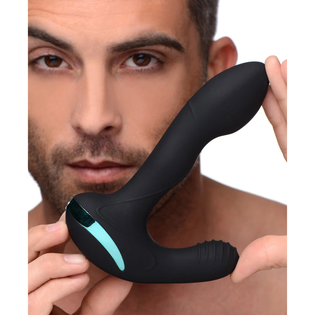 Coax a more intense orgasm out of yourself with a high-tech P-spot massager. Not only does this powerful anal tool vibrate, but the shaft also gyrates to provide a tantalizing stimulation of your prostate. Dual motors allow you to experience the pleasure inside and out, with a stem that buzzes against your perineum. Cycle through 3 intensities of vibration and 4 modes of pulsating patterns, as well as 3 modes of rotation. This rechargeable tool is made of premium silicone so as to be non-porous and phthalate-free. Avoid use with silicone lubricants and clean with mild soap and warm water.