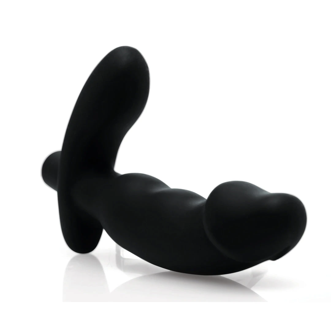 Do not limit your pleasure any longer! Explore deeper prostate massage with this premium silicone vibe. The tapered tip allows for easy insertion with a little bit of water-based lube. The curved head will press against all the right places as the entire device reverberates with the powerful buzzing! An external arm reaches upwards to apply a thrumming pressure against your perineum. Experience pleasure inside and out with a sleek, but ideally-shaped masturbation or couples toy! This device is non-porous and splash-proof for easy cleaning.