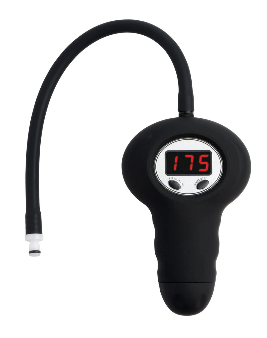 Pump things up with a digital pumping system! Compatible with many Size Matters cylinders for the penis, vulva, nipples, and more, this device features an electric pump and a sturdy silicone connector hose. The digital pressure gauge displays how much suction your body is enduring as you become more and more swollen and sensitive. Two simple button controls make your pumping endeavors easy so that you can immerse yourself in the moment. Just press the Start/Stop button to begin and end the powerful pressure that builds within your cylinder. Ready to play with your engorged parts? The Air Release button quickly frees you for the next chapter of play.