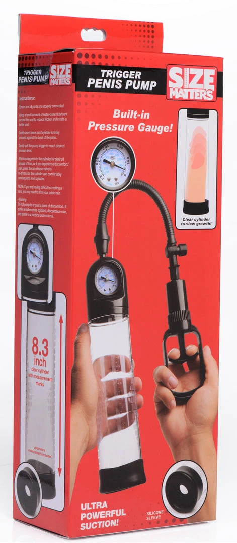 Slide into the silicone sleeve using a little water-based lube for sleekness. The tight opening will create a seal around your penis so that pressure can build within. The cylinder is textured for a firm grasp, clear so that you can watch yourself grow, and marked with measurements so that you can track your progress!