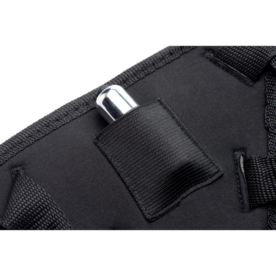 Whether you are pegging, engaging in female-female sex, or finding your own uses for strap-on play, this set allows the top and the bottom to experience both pleasure and comfort! Two dildos are included, a narrow shaft and a thicker shaft, ensuring that penetration is delivered at a relaxed pace. The dongs are curved to stimulate the G-spot or P-spot, and made of non-porous and phthalate-free silicone. A second O-ring is included to accommodate the larger of the two. The harness is adjustable to fit most sizes, the straps securing in place attractively to frame the buttocks. Place the included bullet vibrator in the small pocket on the inside of the front panel to send pleasure into the wearer as they thrust into their partner.