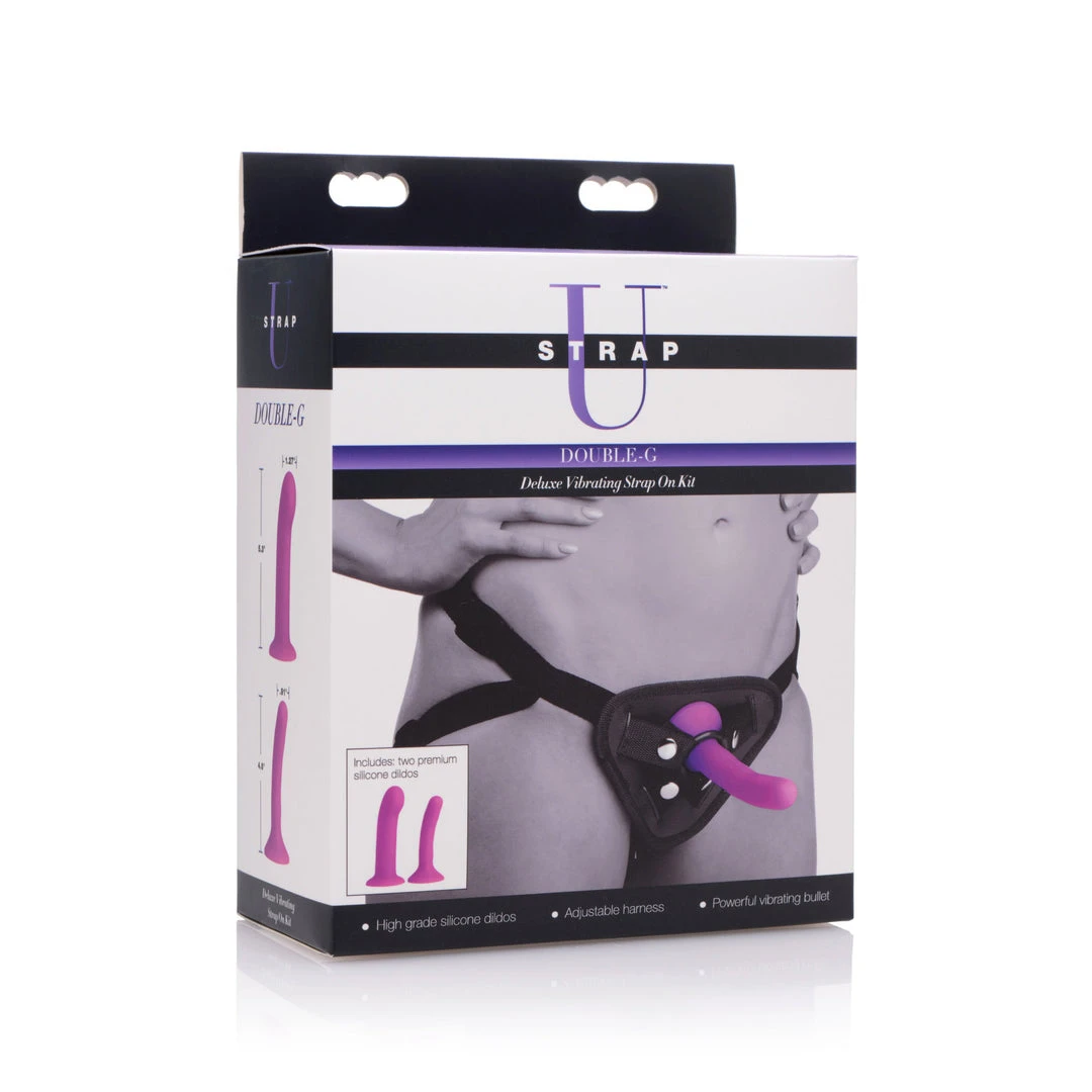 Note: Includes two dildos, harness, a vibrating bullet, and a second O-ring. Bullet requires 3 LR44 batteries, included.