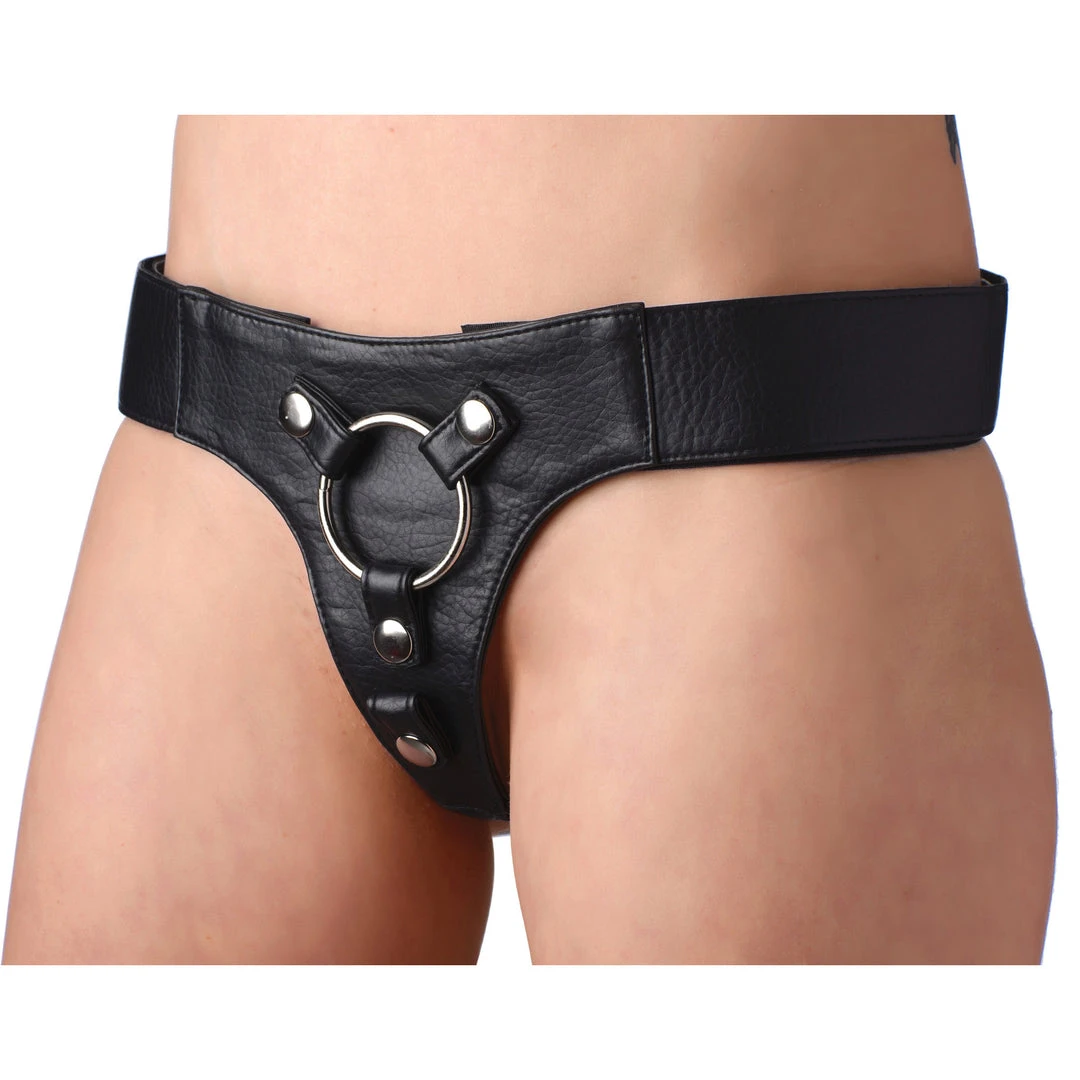Indulge in your strap on fantasies with this fully adjustable and comfortable dildo harness from Strap U. With a wide band supportive harness that adjusts via two Velcro straps, you can insert your favorite flared base dildo into the O ring. Just snap it into place and you are ready to start penetrating your partner with the dildo of your choice! The waistband offers total adjustability, and will accommodate most sizes. The back supporting strap offers a more form-fitting design that hugs the contours of your body, allowing you to move freely. The snap-in design allows you to change out the included ring with one of your own, if you desire a different size or material. Most cock rings will work perfectly! This harness system is easy to maintain, making this an ideal choice for all your strap on adventures.