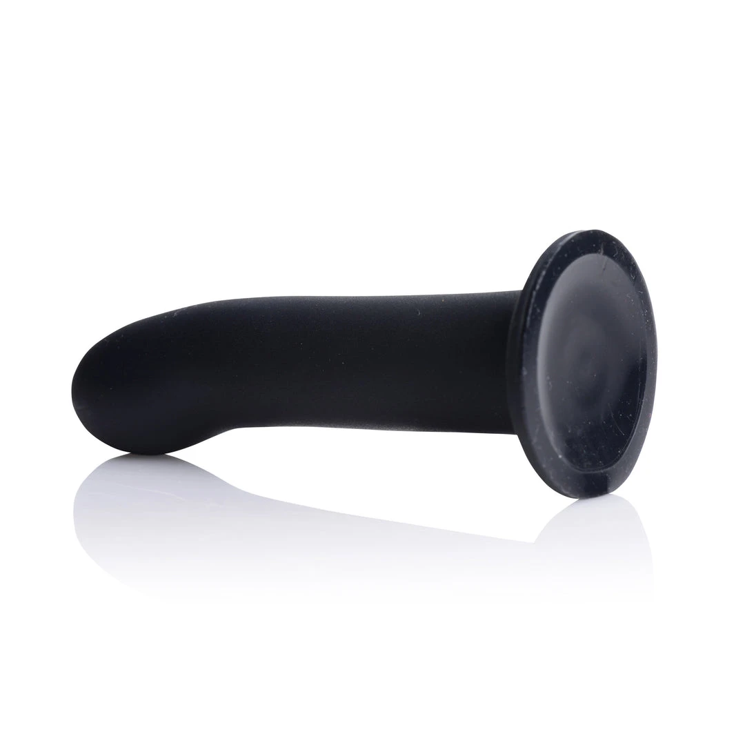 Strap in this premium silicone dildo for the deep, delicious sensations you have been waiting for! Compatible with most harnesses, you can use this velvet-soft shaft while pegging your man in the ass for P-spot stimulation, or for G-spot stimulation during vaginal use on a woman. The curve will hit all the right spots! You can even suction down the base to a hard, smooth surface and use it for solo play or when putting on a show! Made of non-porous and phthalate-free silicone, this dildo is body-friendly and cleans easily with mild soap and warm water. Not compatible with silicone lubricant.