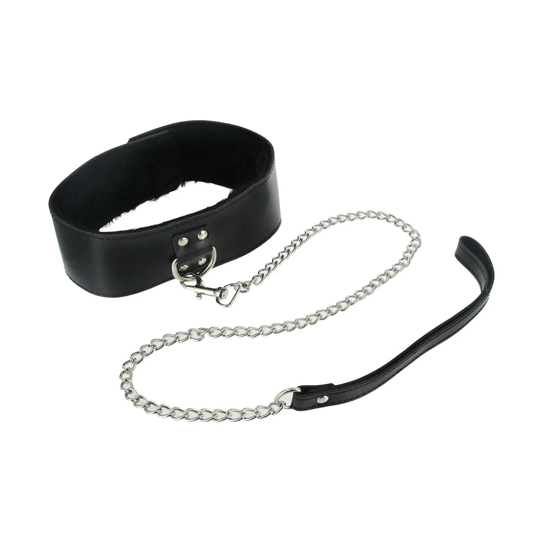 Bind your lover in sexy, bondage black, and do all the dirty things to them that you have been promising! This matching black bondage set includes a collar, whip, and wrist and ankle cuffs that are perfect for restricting your sub in style. The sturdy collar and cuffs are lined with luxurious black faux fur so that your partner can enjoy a plush, comfortable experience while being kept totally under control. Both sets of cuffs feature heavy-duty removable connecting chains so you can choose to keep them tethered together or use the attached D-rings for even more creative bondage scenarios. The whip lets you lay your mark on their skin as a not-so-gentle reminder to obey your commands.