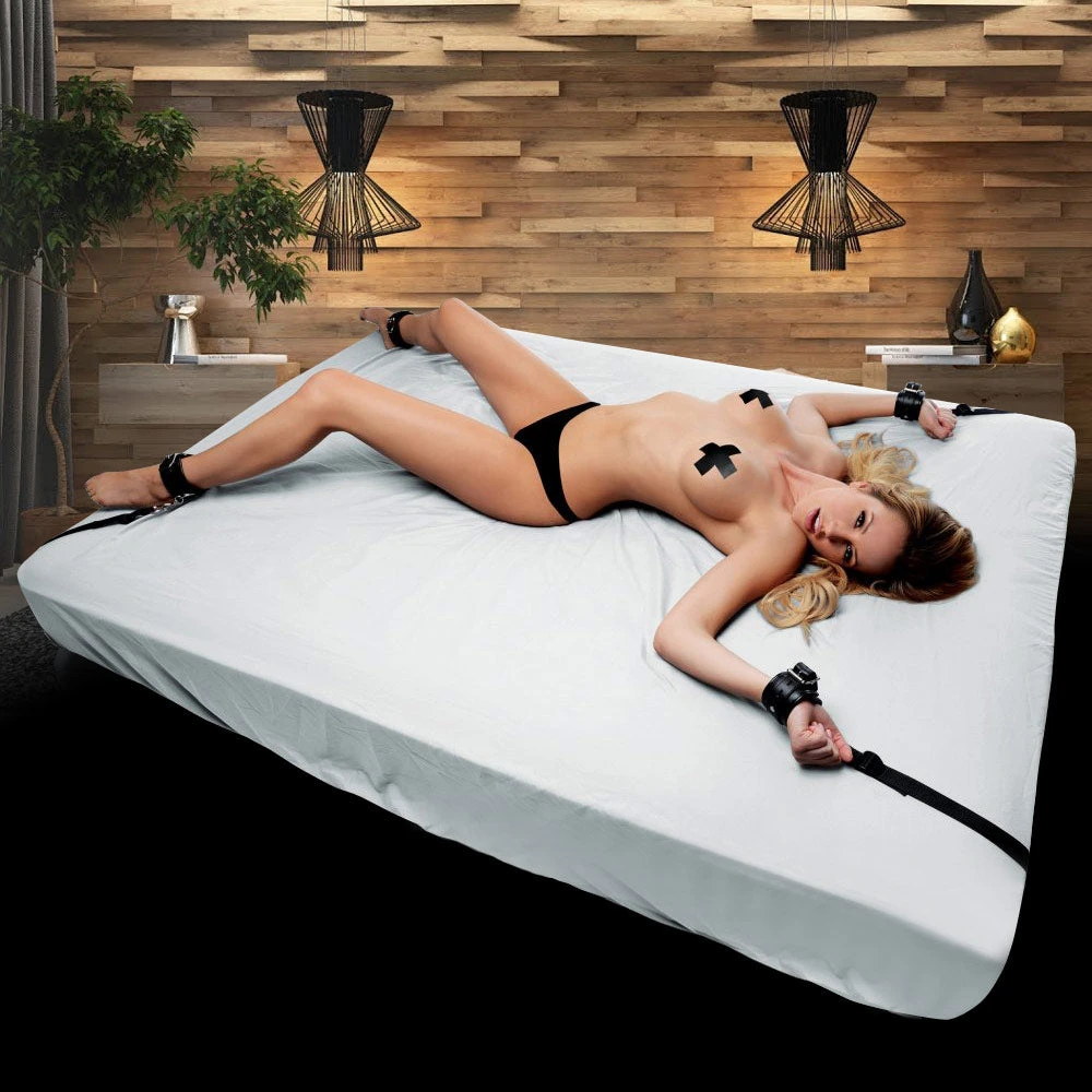 Strap your partner down to the bed and turn them into your personal submissive pet! Instantly transform your bed into a piece of bondage furniture, perfect for opening your lover up, spread eagle! They will be writhing in ecstasy as you please, tease, and torment their helpless body. The sturdy cuffs are lined with comfortable padding so that you play things wrists and ankles will not grow sore as play sessions last long into the evening. The buckle allows for a wide range of adjustment to fit most sizes, and also locks so that your lover will feel even more deliciously trapped and confined. Just slide the restraint set under your mattress and pull the cuffs and straps up at the corners. Adjust the straps as needed to fit all bed sizes. Spice up your sex life and you will never want to get out of bed!